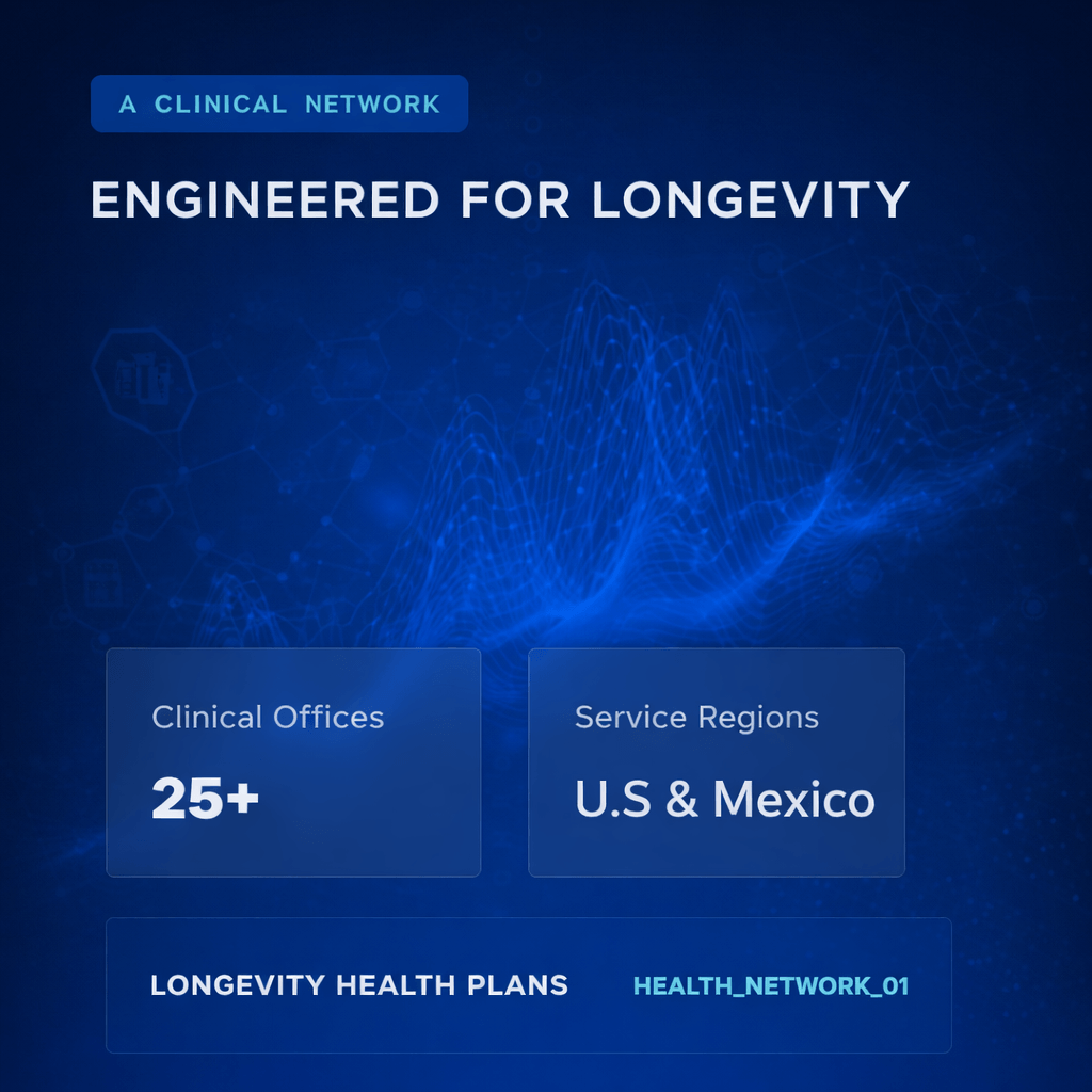 Our clinical network is directly supported by the Longevity Health Plans MSO platform and pharmaceutical ecosystem.